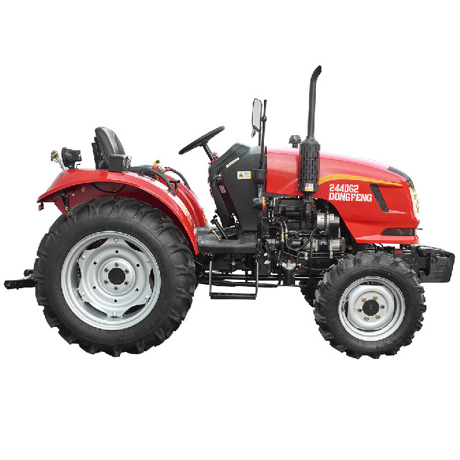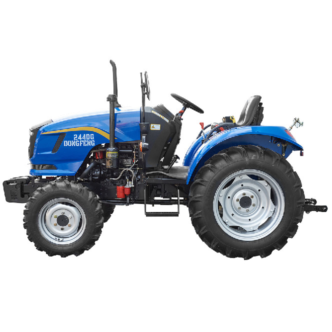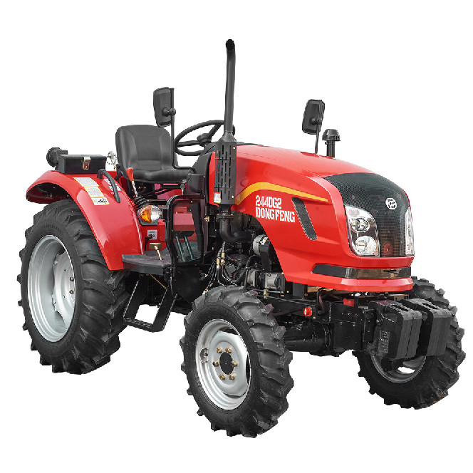 Універсальний повнопривідний трактор потужністю 24 к. с. ¶Є подальшою модернізацією моделі DF 244DHX. ¶Призначений для виконання широкого спектра сільськогосподарських, транспортних та інших видів робіт у приватних домогосподарствах, дрібних і середніх фермерських господарствах, комунальних службах. ¶Конструктивні особливості: ¶Новий, сучасний дизайн ¶Надійний 3-циліндровий двигун потужністю 24 к. с. ¶Реверсна коробка передач 8+8 2-дискове зчеплення.¶Безпечний пуск двигуна, блокування педаллю зчеплення.¶ Гідравлічне рульове управління з окремим бачком і гідравлічним насосом.¶Важелі керування розташовані з боків сидіння та мають різнокольорові рукоятки.¶Передній ведучий міст вимикається 2-швидкісний ВВП 540/1000 об/хв.¶Регульована передня й задня колії.¶Широкі колеса 6.50-16 / 11.2-24.¶Роздільні дискові гальма задніх коліс.¶Стоянкове гальмо автомобільного типу.¶Ручний газ.¶Блокування диференціала заднього моста.¶Потужна навісна система. Об’єднана масляна ванна КПП і гідросистеми.¶Швидкознімний буксирувальний пристрій з обмеженням переміщення.¶Комплектація: Панель приладів із роздільними приладами: цифровий лічильник мотогодин стрілкові покажчики температури охолоджувальної рідини, тиску мастила, амперметр, покажчик рівня палива.¶Ефективна передня оптика, лінзовані фари ближнього світла.¶Задня додаткова фара.¶Передні навісні вантажі 4х20 кг.¶Регульоване сидіння з амортизатором.¶Плоска підлога з гумовим килимком.¶Місце оператора повністю захищено знизу від бруду.¶Прозорі щитки захисту від бруду.¶Зручні та широкі підніжки з обох боків.¶Електрична розетка для причепа.¶Вимикач маси. Два газові амортизатори кришки капоту.¶Високий глушник із захисною накладкою. ¶Дзеркала заднього виду.¶Повторювачі габаритних вогнів та поворотів на бічних захисних дугах.¶Оригінальні комбіновані задні ліхтарі стоп/габарит, покажчики поворотів.¶Додаткові задні катафоти-світловідбивачі.¶Сигнал аварійної зупинки.¶ Один гідравлічний вихід.¶ Купити трактор Dongfeng DF 244DG2 можна по всій території України через наших офіційних представників, або замовити через спеціальну форму зворотного зв’язку в розділі «Контакти». ¶На всі трактори Dongfeng надається гарантійний строк експлуатації – 2 роки.