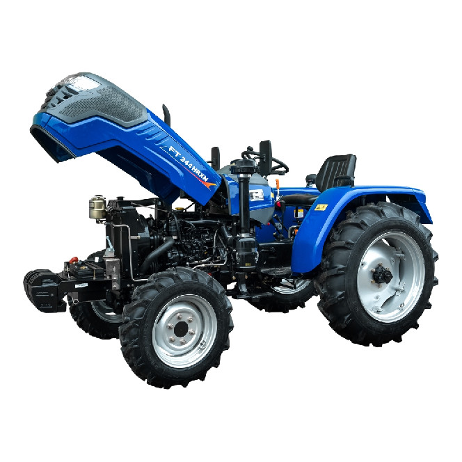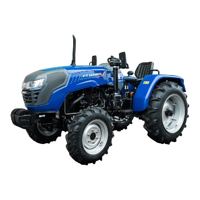 Економічний і надійний 3-циліндровий двигунВеликий зручний паливний бакЕлектрофакельна система підігріву повітря у вхідному колекторіГлушник закритий захисним кожухом за всією довжиноюВал відбору потужності 2-швидкісний: 540/1000 об/хвГідросистема з окремими гідронасосом та масляною ванноюБуксирувальний пристрій – швидкознімна маятникова тягаПередній ведучий міст портального типу з високими бічними редукторамиВисокі кліренс та агротехнічний просвітПросторе місце оператораЗручне розташування систем керуванняРеверсивна коробка передач (4х2)+(4х2)Великі колеса, передні 6.50-16, задні 11.2-24Задні гальма барабанного типуРоздільні гальма задніх колісРегульована передня та задня коліїБлокування диференціала заднього моста Комплектація:Комфортне регульоване сидіння з амортизаторомКомбінована панель приладів: цифровий лічильник мотогодин, стрілковий тахометр, стрілковий покажчик рівня палива, стрілковий індикатор температури двигуна, індикатор недостатнього заряду акумулятора та ін.Додаткова підніжка з високим рифленнямЕлектрична розетка для причепаАмортизатор капотаВеликі дзеркала заднього виду2 гідравлічні виходи зі швидкороз'ємними муфтамиПередні навісні вантажіКрила передніх колісВимикач масиЗадня додаткова фараКупити трактор FT 244HRXN можна по всій території України у наших офіційних представників або замовити через спеціальну форму зворотного зв’язку в розділі «Контакти». На всі трактори Foton-Lovol надається гарантія 2 роки.