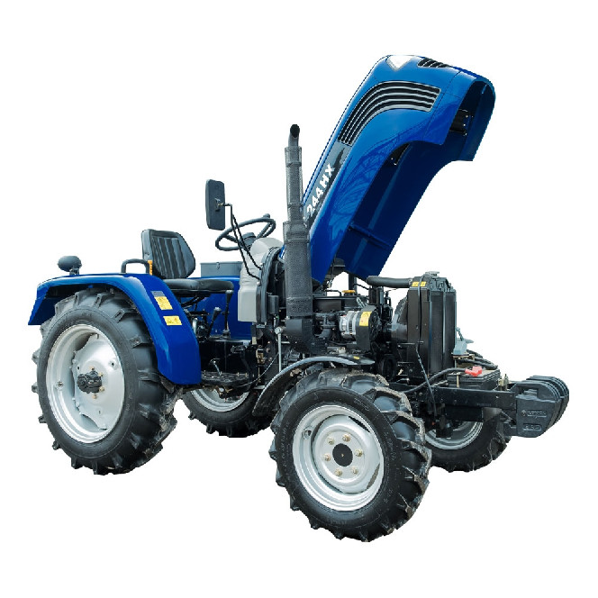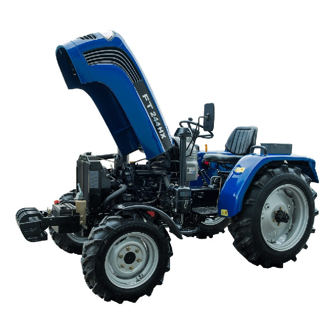 Економічний і надійний 3-циліндровий двигунВеликий зручний паливний бакЕлектрофакельна система підігріву повітря у вхідному колекторіГлушник закритий захисним кожухом за всією довжиноюВал відбору потужності 2-швидкісний: 540/1000 об/хвГідросистема з окремими гідронасосом та масляною ванноюБуксирувальний пристрій – швидкознімна маятникова тягаПередній ведучий міст портального типу з високими бічними редукторамиВисокі кліренс та агротехнічний просвітПросторе місце оператораЗручне розташування систем керуванняКоробка передач із розширеним швидкісним діапазоном 8+2Великі колеса, передні 6.50-16, задні 11.2-24Задні гальма барабанного типуРоздільні гальма задніх колісРегульована передня та задня коліїБлокування диференціала заднього мостаКомплектація:Комфортне регульоване сидіння з амортизаторомКомбінована панель приладів: цифровий лічильник мотогодин, стрілковий тахометр, стрілковий покажчик рівня палива, стрілковий індикатор температури двигуна, індикатор недостатнього заряду акумулятора та ін.Додаткова підніжка з високим рифленнямЕлектрична розетка для причепаАмортизатор капотаВеликі дзеркала заднього виду2 гідравлічні виходи зі швидкороз'ємними муфтамиПередні навісні вантажіКрила передніх колісВимикач масиЗадня додаткова фараКупити трактор FT 244HХ можна по всій території України у наших офіційних представників або замовити через спеціальну форму зворотного зв’язку в розділі «Контакти». На всі трактори Foton-Lovol надається гарантія 2 роки.