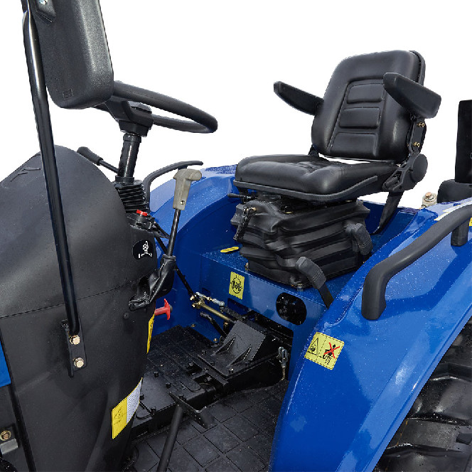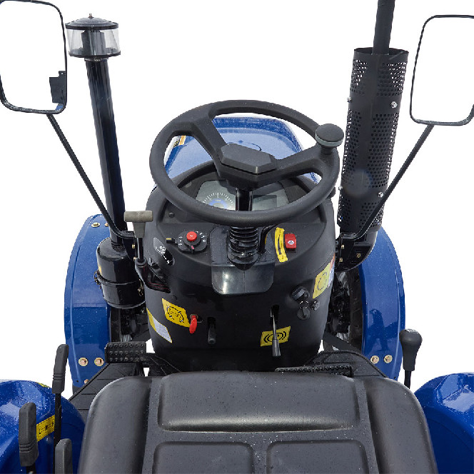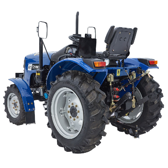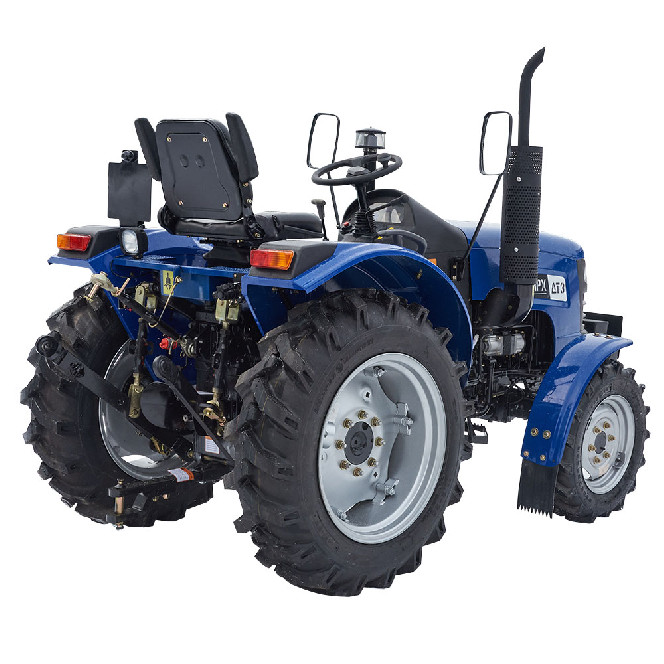 Сучасний повнопривідний універсальний трактор ДТЗ 5244НРХ має новий 24-сильний двигун, об’єм якого збільшений з 1,53 до 1,9 літра; модернізовану коробку передач з окремим реверсом, що забезпечує 9 швидкостей руху вперед і 9 швидкостей назад; посилену малошумну трансмісію; потужний навісний механізм; швидкознімний буксирний пристрій; гідравлічне рульове керування. Завдяки конструктивним особливостям, унікально просторому компонуванню робочого місця водія й ергономічному розташуванню органів управління, трактор забезпечує найвищий у своєму класі рівень комфортності роботи водія. Конструктивні особливості: Двигун зі збільшеним об'ємом і великим моторесурсом. Здвоєна коробка перемикання передач 9+9 з окремим реверсом. Посилена малошумна трансмісія. Гідравлічне рульове управління. Окремий гідравлічний насос для гідропідсилювача рульової колонки. Зручне розташування систем управління. Просторе місце оператора. Центральний перемикач світла. Посилений гідронавісний механізм із безступінчатим регулюванням тяг і розкосів. Буксирний пристрій типу «серга». Гідравлічна система оснащена масляним фільтром. Збільшений паливний бак. Високий кліренс. Регульована передня і задня колії. Посилені поворотні шарніри переднього моста. Сапун картера переднього моста виведений у підкапотний простір. Маточини задніх коліс виконані заодно з півосями. Кріплення дисків задніх і передніх коліс на шпильках. Задні і передні шини широкого профілю. Глушник і коліно глушника закриті захисним кожухом по всій довжині. Заборник повітряного фільтра піднято із зони інтенсивного запилення. Акумуляторна батарея збільшеної місткості. Електрогенератор підвищеної потужності. Вимикач маси. Комплектація: Комфортне регульоване сидіння з амортизатором. Електронна панель приладів (лічильник мотогодин, покажчик тиску масла, покажчик рівня палива, тахометр, покажчик температури води, покажчики напруги бортової мережі, відсутністі зарядки акумулятора та ін.). Гумовий килимок на підлозі водійського місця. Антифрикційні накладки з бічними упорами на всі педалі. Фігурні антифрикційні рукоятки на всіх важелях управління. Додаткові підніжки з обох сторін. Поручні на задніх крилах. Збільшені дзеркала заднього виду. Електрична розетка для причепа. Гідравлічний вихід з швидкороз'ємною муфтою. Широкі задні крила посиленої конструкції. Задня додаткова фара. Передні навісні вантажі. Передні крила. Купити трактор ДТЗ 5244НРХ можна по всій території України у наших офіційних представників або замовити за допомогою спеціальної форми зворотного зв'язку в розділі «Контакти».На всі трактори ДТЗ надається гарантія 3 роки.